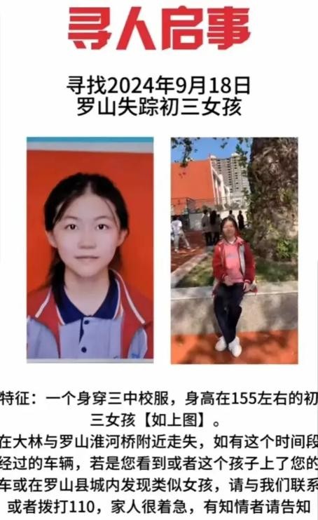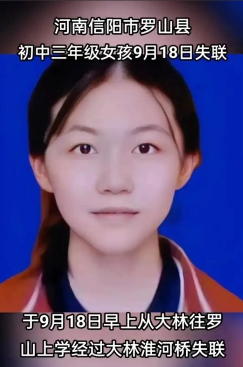 事件回顾:网上有传言说,河南有个初三的女生,在9月18号早上,她爷爷送她去学校的路上,就在正阳县和罗山县交界的大林淮河桥附近,她突然说她的书包掉了,紧接着又说她的钱也丢了。爷爷去帮她找的时候,回头一看,女孩就不见了。家里人和警察找了好久都没找到她。没想到的是,到了9月20日,在淮河下游,离她失踪的地方不远处,最终找到了她,可是她已经没有生命迹象了。