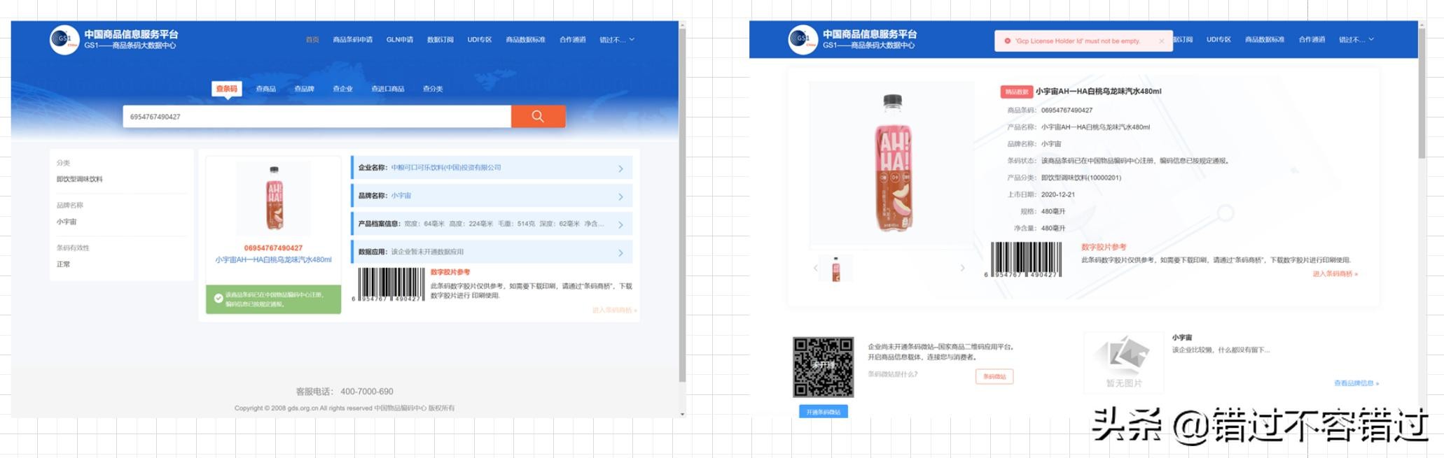 目前查询信息不影响,在某些页面查询的时候会有出现报错,相信应该很快能够得到修复。商品上还有提供商品条码数字胶片参考,可通过下载印刷使用,目前这块还无法使用进不去条码商桥,有可能是还没完全发布。