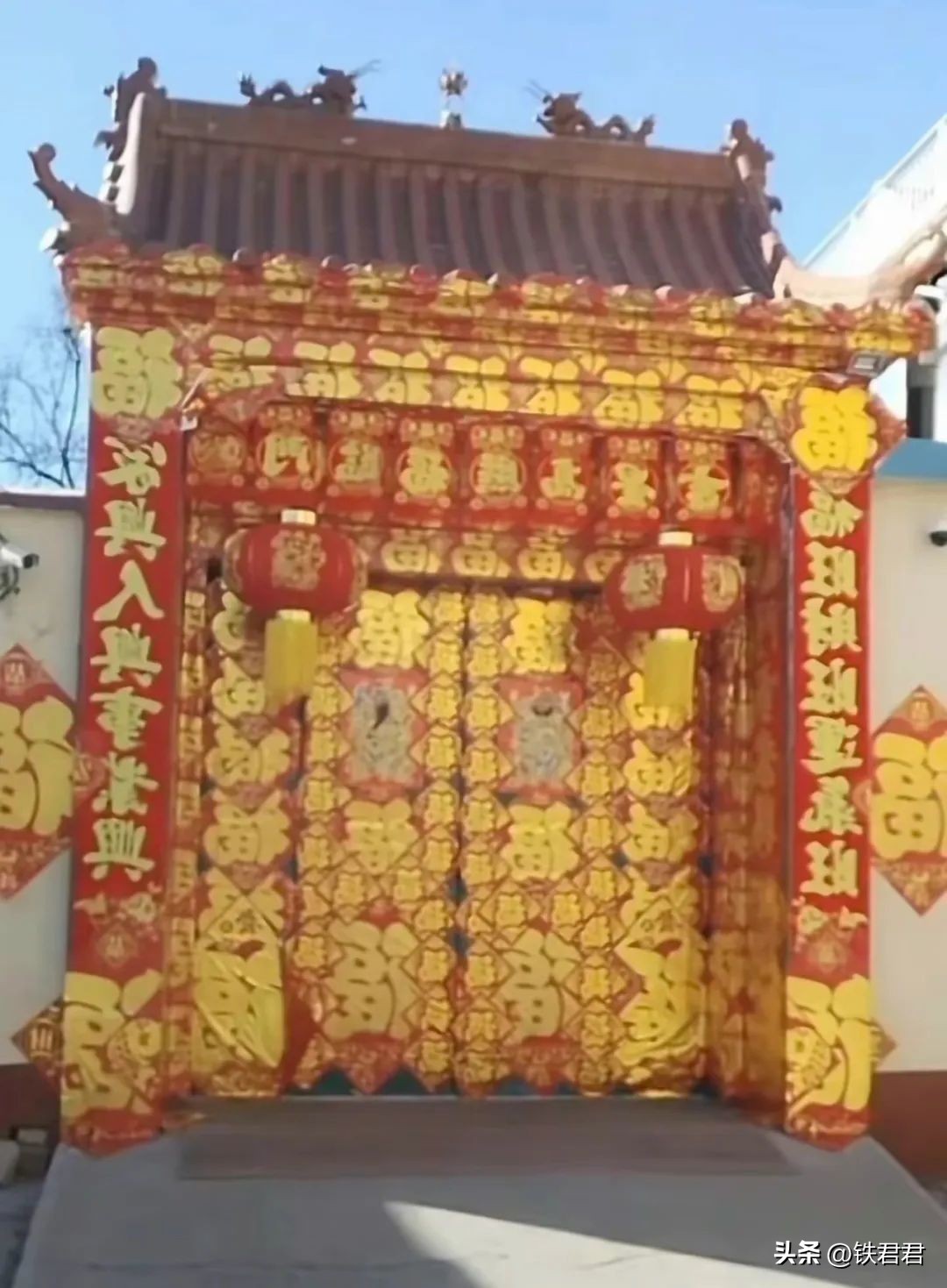 12.这大门口的对联金碧辉煌啊,一看就知道是卖对联的。