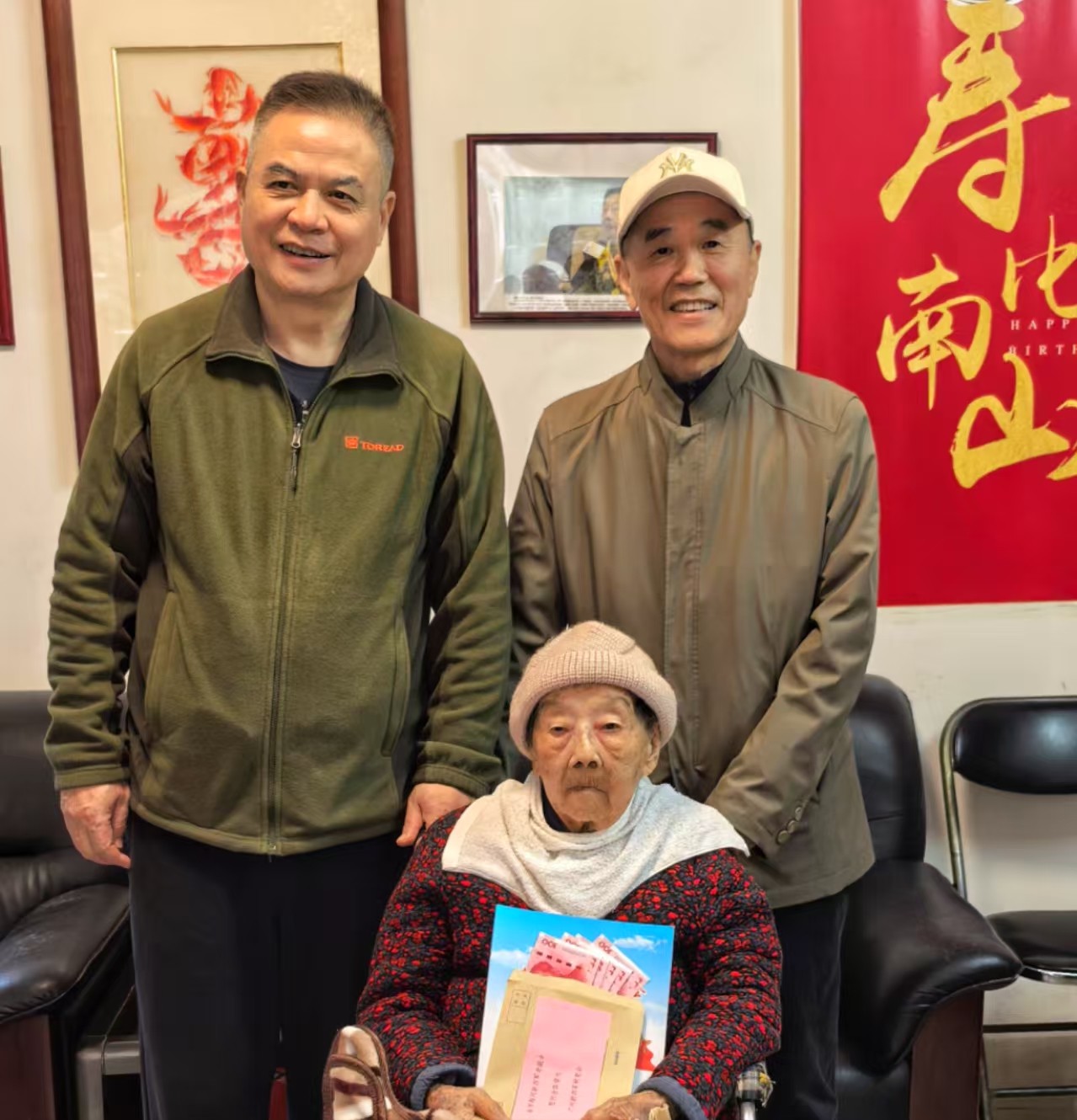 郑向明、许多与陈星老人合影留念