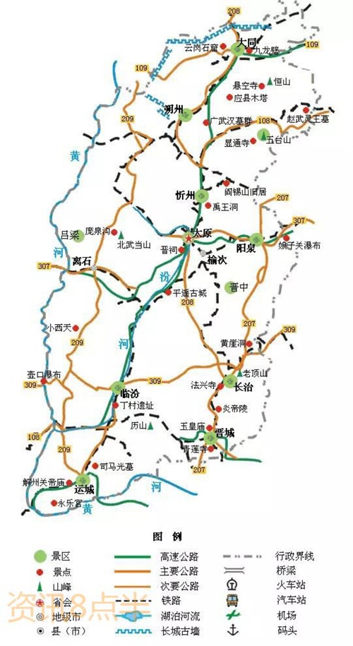 山西省 交通旅游图