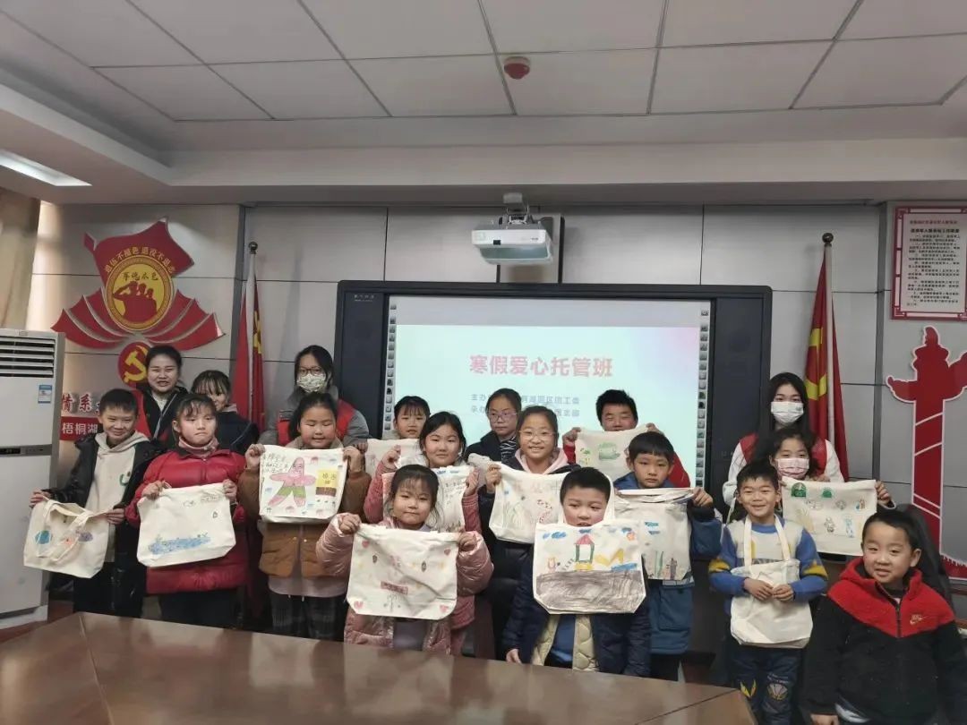 (梧桐湖社区寒假“爱心托管班”开展“手绘帆布包 把爱‘袋’回家”活动)