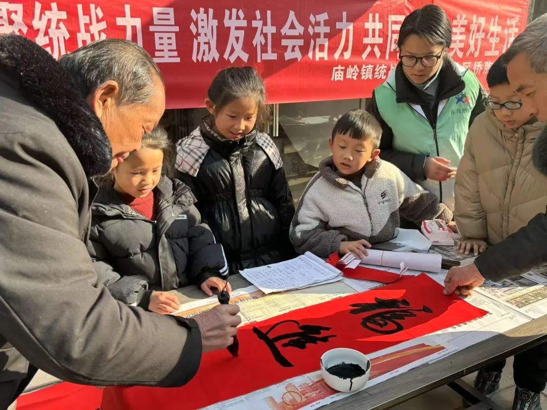 (庙岭社区寒假“爱心托管班”学习写对联)