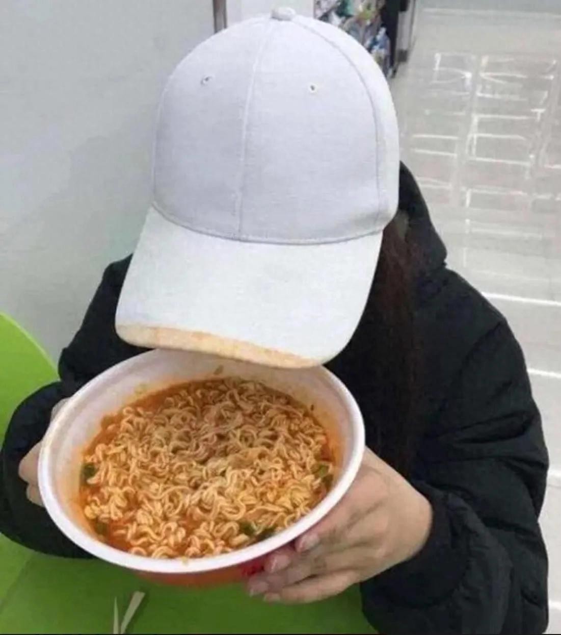 1. 方便面虽好,吃的时候还是得注意点,比如别戴帽子。