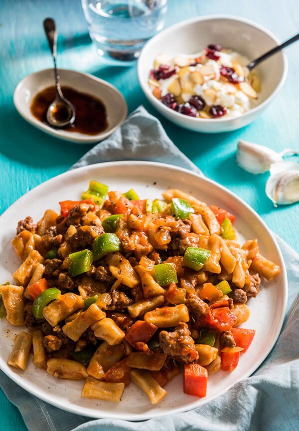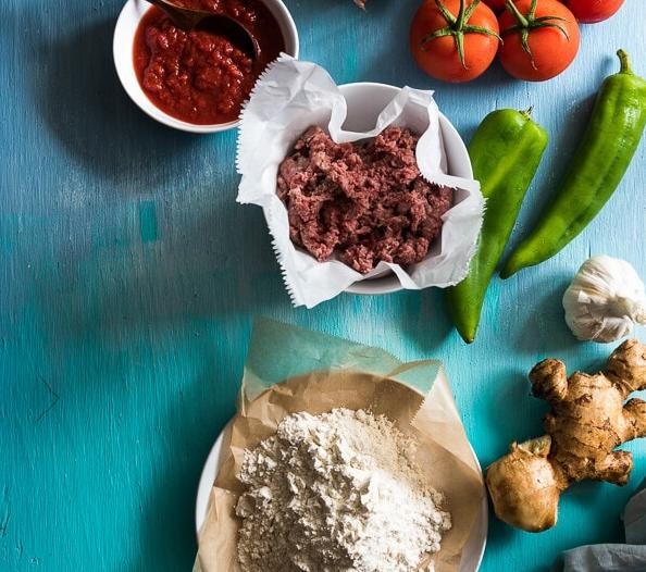 番茄酱 3大勺、水 3大勺、生抽 2大勺、糖 1小勺、盐1/4小勺、植物油 2大勺、洋葱 1/2个、大蒜 4瓣、生姜 适量、番茄 1个、青椒 1个、醋 2大勺。