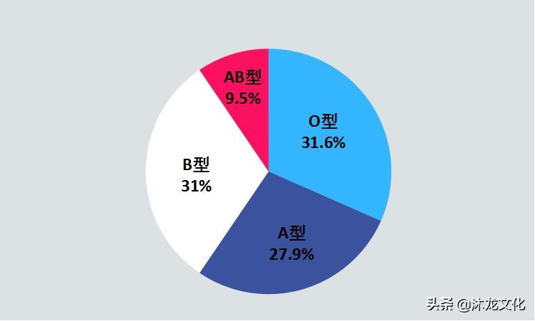 O型占31.6%,A型占27.9%,B型占31%,AB型占9.5%。