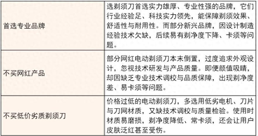 ▶建议大家优先挑选那些经过专业优化、性能强劲、不伤肌肤且贴合度高的产品。千万别选材质差、剃须不干净还容易引发皮肤不适的产品。不妨参考排行榜前五名剃须刀品牌内容,仔细挑选,如此才能购买到安全又好用的剃须刀。