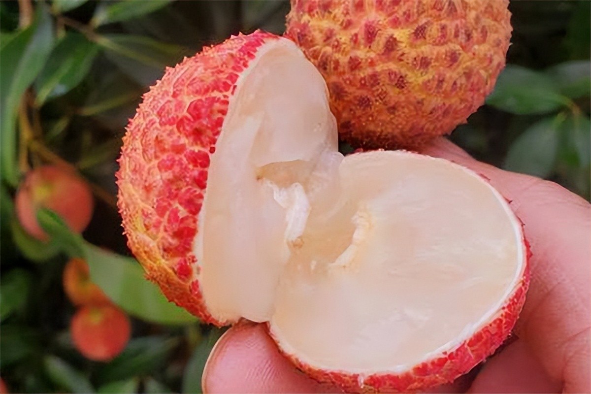 果型较大,如鸡蛋大小,皮薄肉嫩,肉厚核小,一口下去满嘴的果肉,还带有微微丁香的香味,集合了黑叶荔枝以及其他荔枝的优点,香甜爽脆,甜蜜多汁。