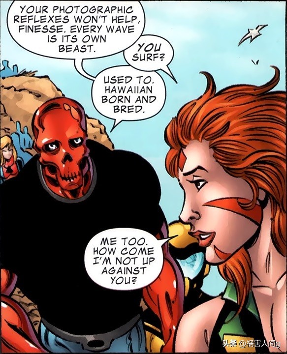 阿拉尼是个夏威夷少女,在父亲的训练下拥有了非常优秀的冲浪技术。她是个变种人,在变种基因觉醒之后,进入了查尔斯泽维尔的变种人学校。多年以来她一直都只是个小女孩,虽然参加过X战警的考核但是并没有几个,所以她并没有加入过X战警。
