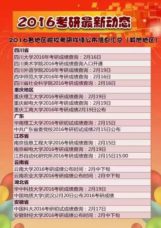 2016各地区院校考研成绩查询时间最新版!
