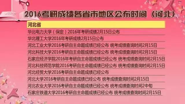 2016考研各院校考研成绩公布时间(河北)