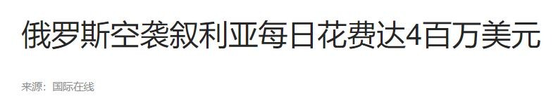 2015年10月22日,国际在线,《俄罗斯空袭叙利亚每日花费达4百万美元》