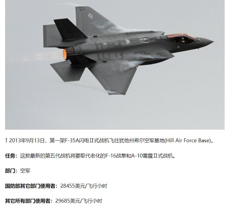2016年08月16日,界面新闻,《美军各式战机飞一小时要烧掉多少钱?》