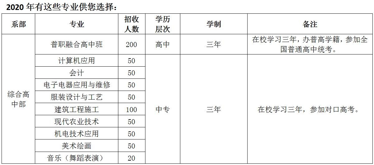 4.普通中专:招收思想品德好(无违纪处分记录)、无违法行为、身心健康的应届初中毕业生。音乐教育专业需女生1.55米、男生1.65米以上且班主任面试合格。