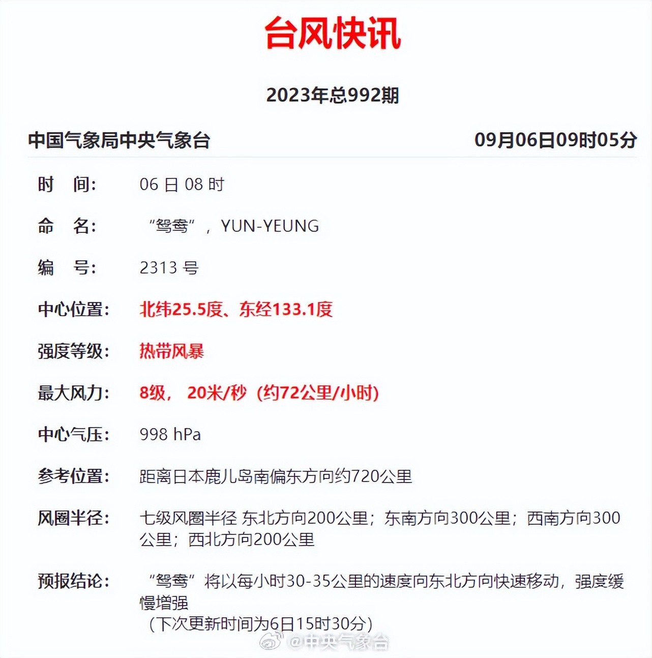 今年第13号台风“鸳鸯”生成,未来会趋向日本