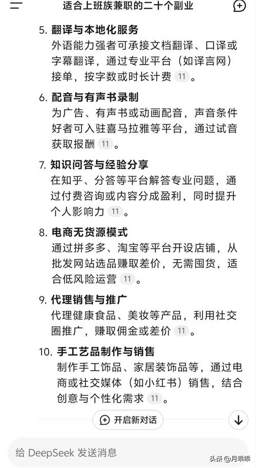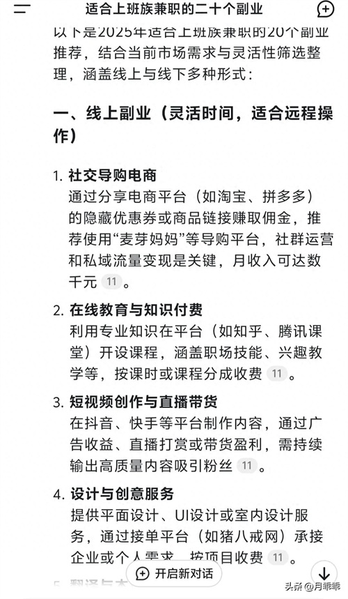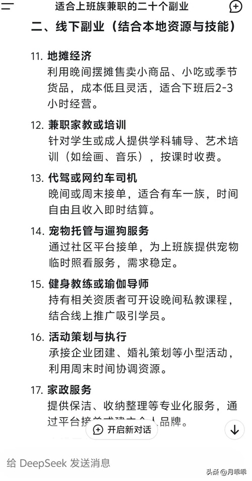 朝九晚五的生活虽然稳定,但有时候也会让人觉得有些单调。你是否想过在工作之余,尝试一些新的事物,结识更多的朋友,同时还能增加收入,提升自己的生活品质,如果答案是肯定的,那么这二十Deepseek推荐的适合上班族的兼职副业,一定不要错过!