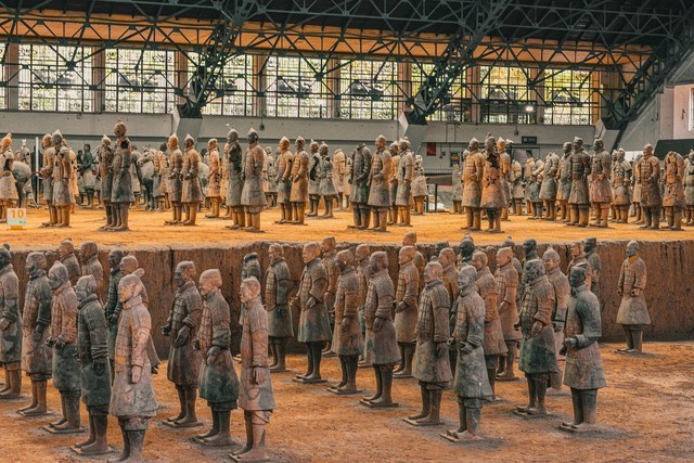 兵马俑的规模之大令人难以置信,迄今为止,已经发现了数千个兵马俑,其中包括战士、军官、骑兵和战车,这些雄伟的陶俑排成整齐的军阵,仿佛重塑了秦始皇统一六国的军队,兵马俑的规模和细节精确度表明了秦始皇的统治能力和雄心壮志。