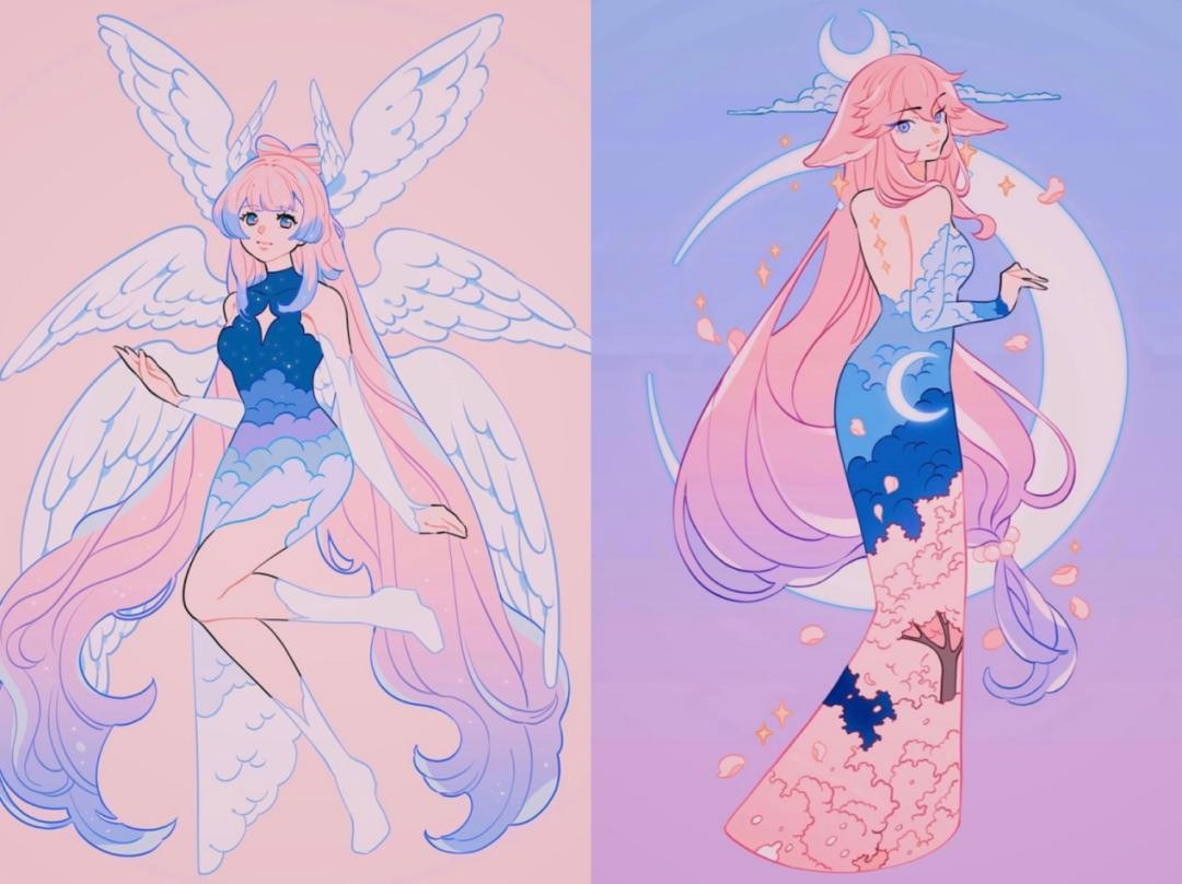 在Meyoco的作品中星云、浪花、银河,这些浪漫的元素使整个画面变得像是被赋予了魔法一样灵动。