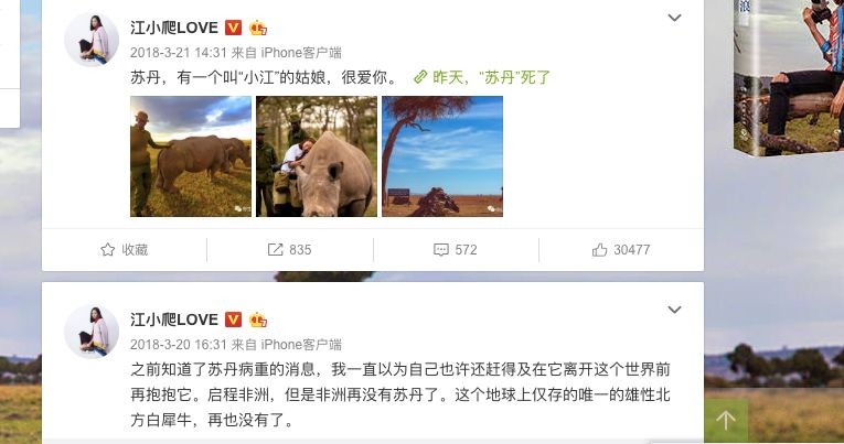 听到这个消息之后,江一燕痛心不已,苏丹”是她拥抱过的第一头犀牛,而人类对于整个犀牛种群却造成如此深的伤害。