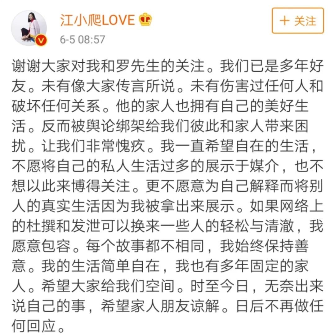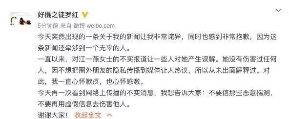 而罗红及其前妻也都纷纷出来回应,为江一燕正名。