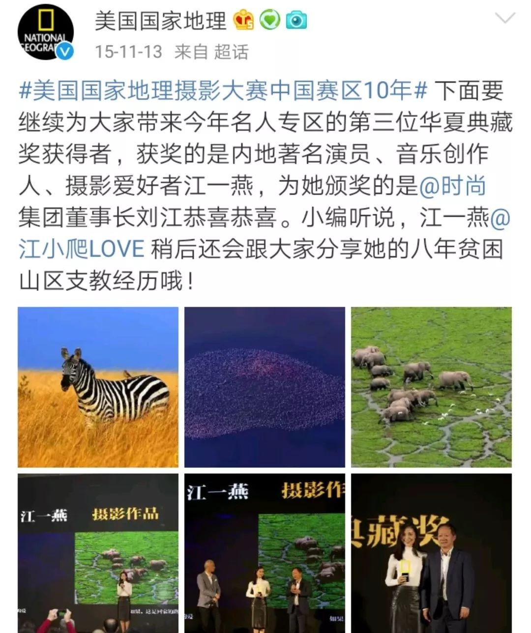 2015年底,美国《国家地理》全球摄影大赛中国赛区里,唯一一个属于女摄影师的奖项,被江一燕捧走了。