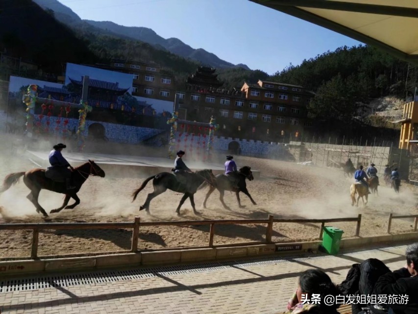 酒足饭饱,继续上山观看《风云土司寨表演》。据知打造的大型情景特技十锦绣战马奔腾抗击三废,仿佛时空穿越。继续向前,再去静静地听一听看一看苗族歌舞,美好的爱情故事是这里永恒的主题。