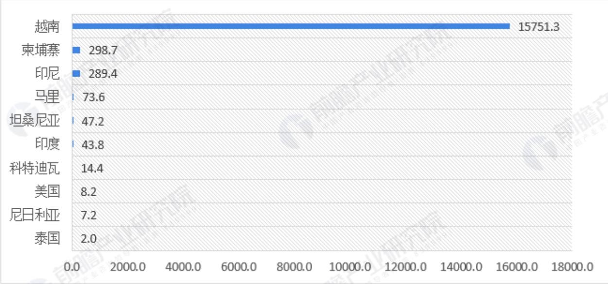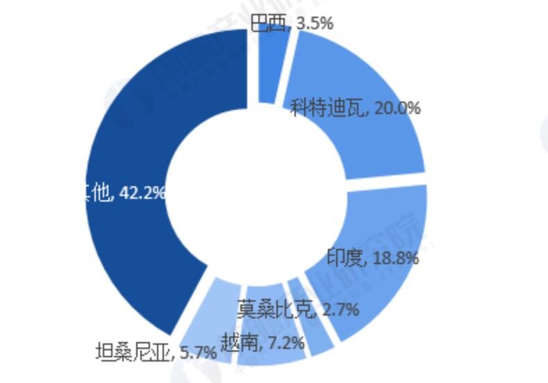 图18:2019年我国腰果仁主要从越南、印尼、柬埔寨等国家进口