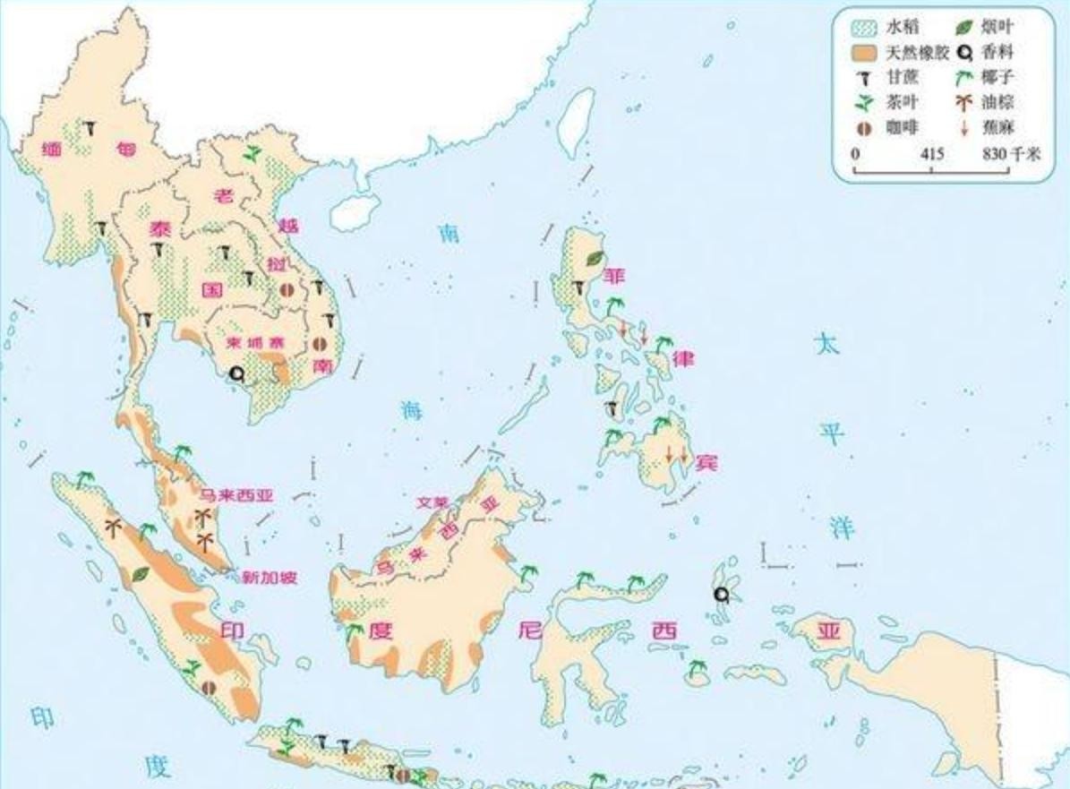 从气候、降水方面分析,东南亚地区雨热条件良好,除中南半岛北部少部分地区外,其他地区的农业条件极其理想,适合种植热带作物。