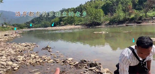 这些老乡捕鱼的水域,是典型的南方山区涧流,一般上游是山体大水库,下游是通江的大河——这种水域一般都是下游鱼群溯流产卵的理想场地。