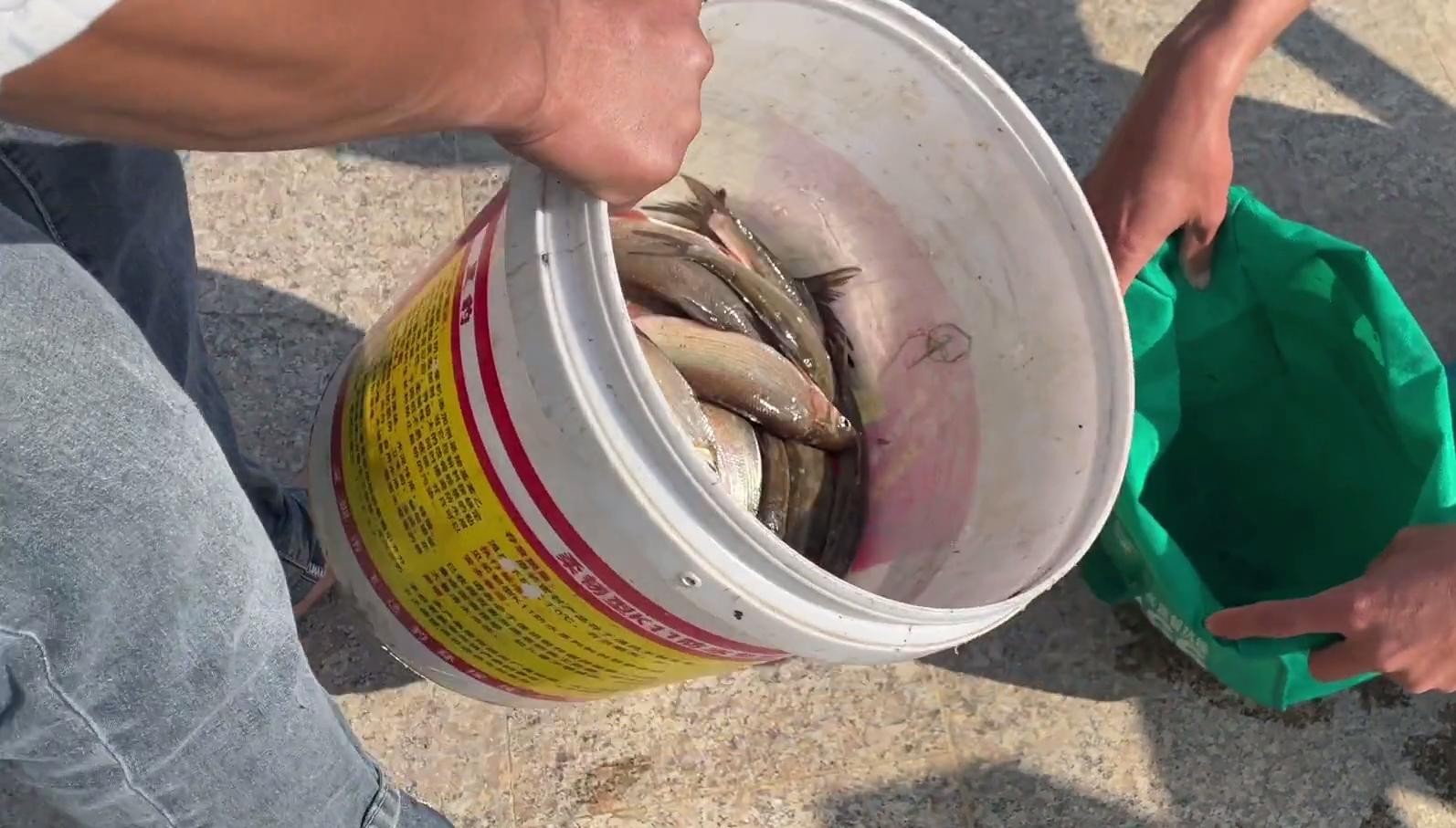 长江君:这一桶鱼里还有一些价格比较高的马口鱼、溪石斑,因此算下来这些黄尾鱼可能还不到2元一斤……