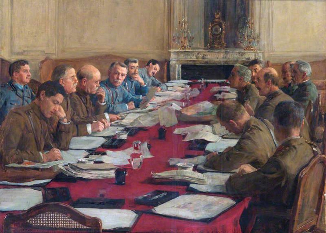 这幅赫伯特·奥利维尔的油画作品《军事代表会议》被巴黎沙龙授予银奖。奥利维尔在巴黎和会上担任非官方艺术家代表。