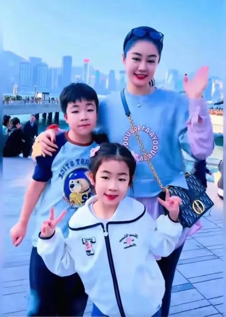36岁王小蒙带两娃游香港,穿着装扮少女感,孩子颜值高