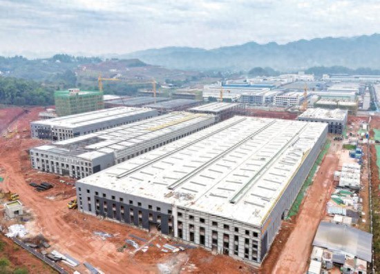 正在加快建设的川渝高竹新区制造产业园及配套基础设施建设项目(标准化厂房)。