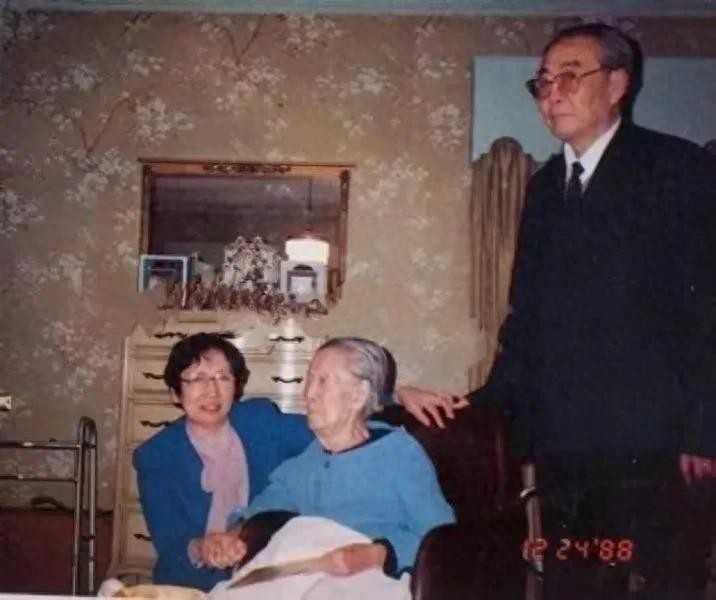 1988年,91岁于凤至在美国别墅里的珍贵照片,身体显瘦,头发花白