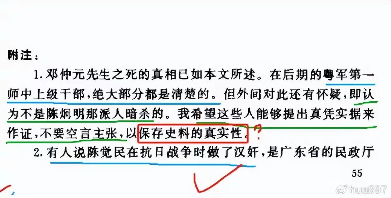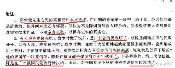 1,邓仲元先生之死的真相已如本文所述,在后期的粤军第一师中上级干部,绝大部分都是清楚的,但外间对此还有怀疑,即认为不是陈炯明那派人暗杀的。我希望这些人能够提出真凭实据,不要空言主张,以保存史料的真实性。