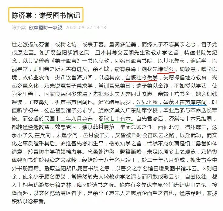 (3)谦受公40岁时陈济棠还没出生;更别说济集,济南两个了,不想展开答这些荒谬问题;