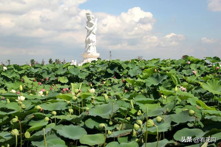 16.镇平县的著名景点-中原荷花博览园。位于河南省南阳市镇平县杨营镇。长江以是北规模最大的万亩莲藕种植基地,逐步形成集莲藕种植、生产加工、旅游观光、产业扶贫等为一体的乡村旅游示范园区。核心旅游区占地面积1500余亩,背景生产区8000余亩,引进、培育国内外名贵观赏莲400余种。吸引野生保护鸟类有红冠水鸡、白骨顶水鸡、野鸭、白鹭、夜鹭等10余种上千只,园内栽种桂花、香樟、玉兰、松树、海棠等景观树种20余个5万余株。