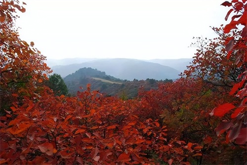 红叶岭风景区位于安泽县城西北 18 公里处,海拔 1301 米,景区总面积 24 万亩 。每到金秋时节,这里便迎来了最美的时刻。满山的黄栌由绿变黄、由黄变红,万山红遍,层林尽染,灿若云霞。登临瞭望塔极目远眺,百余平方公里的红色海洋慑人心魄,苍翠欲滴的青松、金黄色的栎叶点缀其中,使满山红叶显得更加娇艳,宛如一幅巨大的天然彩色油画。漫步林中小路,沿途有迎客松、双罗汉、天堂伞等奇树分布,处处有意,步步是景,让人陶醉其中,流连忘返。