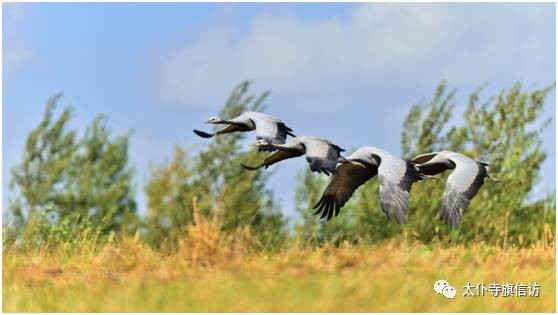 蓑羽鹤也来此觅食,其举止娴雅,稳重端庄,故又名闺秀鶴。每年的春天,它会来到北方的草原生育后代,因为这里也是它们出生的地方。秋天10月中下旬会飞到西藏南部或者飞跃喜马拉雅山到印度塔尔沙漠地区过冬。
