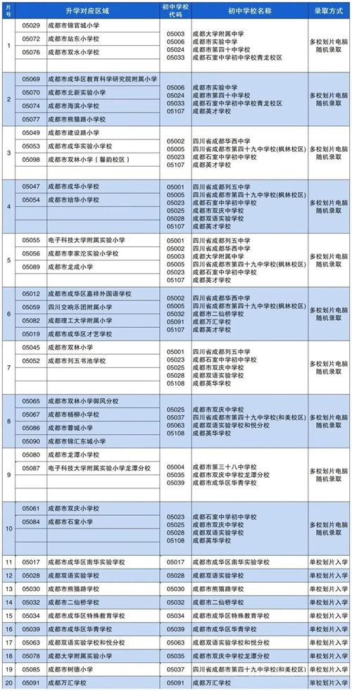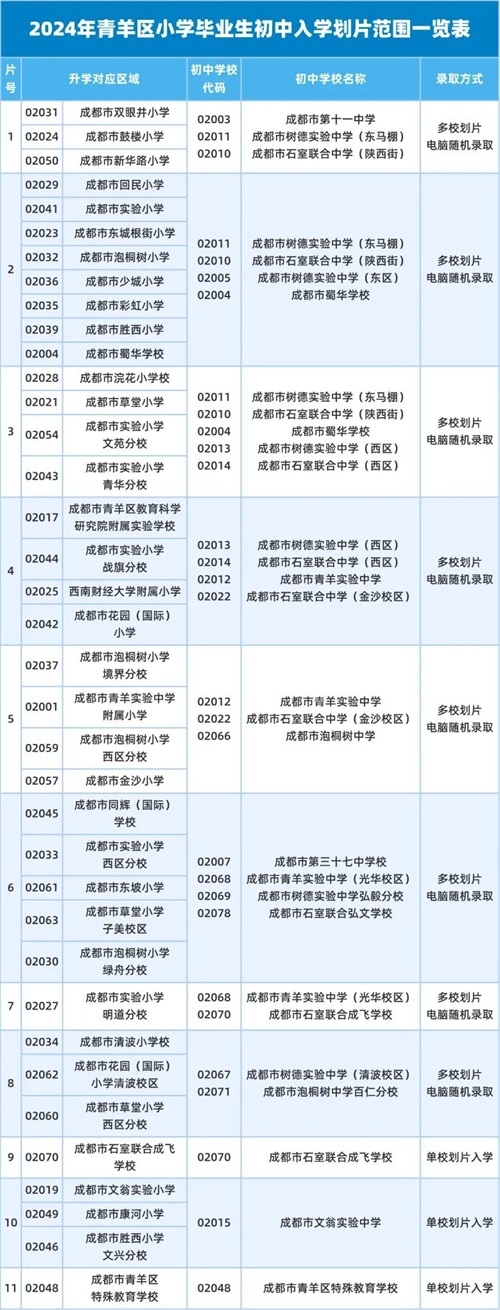 2024年成都青羊区小学毕业生初中入学划片范围一览表