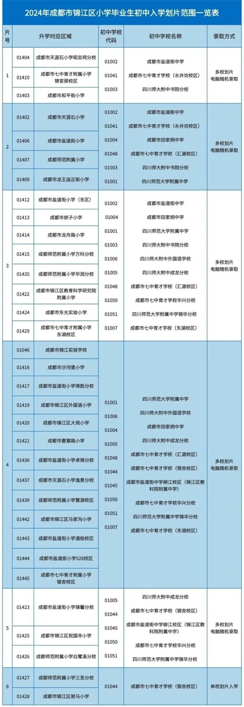 2024年成都锦江区小学毕业生初中入学划片范围一览表