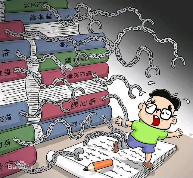 应试教育致使了老师因过于急切地想要提高学生的考试分数,而加重学生的课业负担。这一现象越来越普遍,导致孩子们几乎很少有时间做一些课外活动,或是去追求自己的兴趣爱好。譬如有的孩子爱好美术,可课后作业做完就已经很晚了,没有时间再去做自己真正感兴趣的课后活动,会感到难以放松,身心疲惫,这对他来说无非是某种精神上的压迫和摧残。