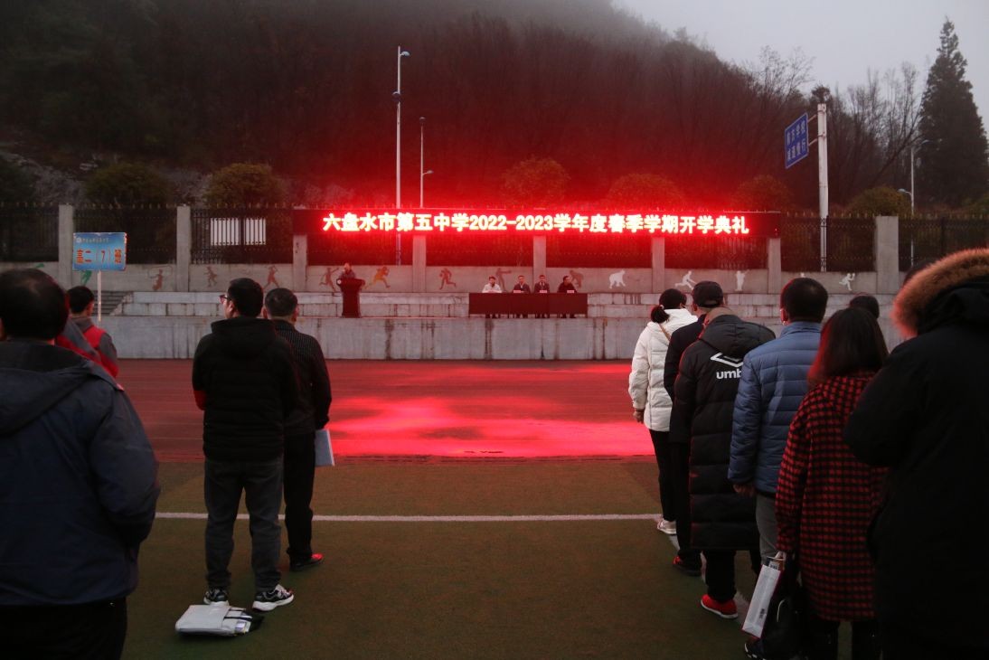 2月8日,六盘水市第五中学师生齐聚学校操场举行2022-2023学年度春季学期开学典礼。