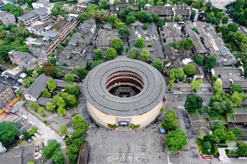 客家圆形土楼主要分布在广东、福建、江西等地的客家人聚居区,最著名的是福建永定土楼,成都市洛带古镇的博客楼也是同一种类型的建筑。
