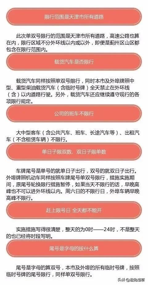 10,①对于违反天津尾号限行规定和外地车外环线(不含)以内早晚高峰期限行规定的,罚200元,三小时内不重复处罚。 ②对于违反禁令标志指示的,处以100元罚款记3分处罚;禁令标志是指违反如禁止通行、禁止停车、禁止左转弯、禁止鸣喇叭、限制速度、限制重量等禁令将处100元罚款记三分处罚。禁令标志的颜色,除个别标志外,为白底,红圈,红杠,黑图案。图案压杠。