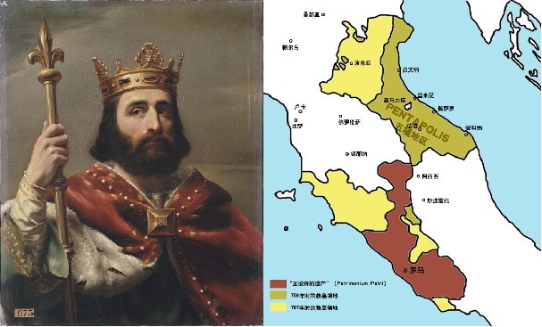 早期的教宗国国土靠罗马皇帝和贵族的捐赠,罗马帝国衰落后,法兰克王国成为最大霸主,法兰克国王丕平将大量土地作为奉献赠送给教宗,史称“丕平献土”,奠定了教宗国的立国基石。