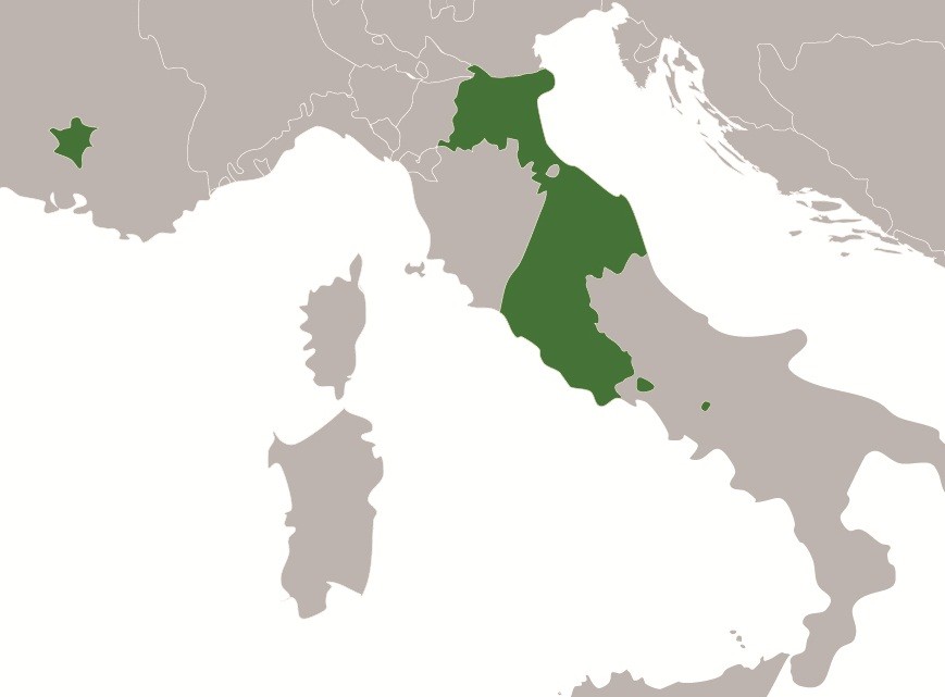 献土包括原东罗马总督辖区,托斯卡纳,科西嘉,伦巴底,中意大利五城等