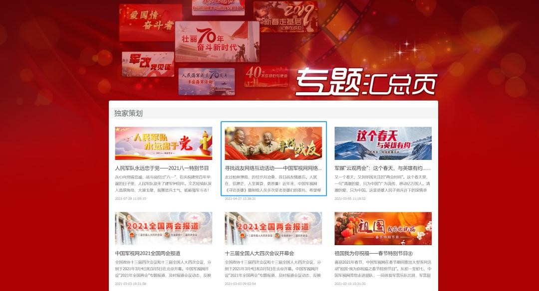 中国军视网“寻找战友”专题页面