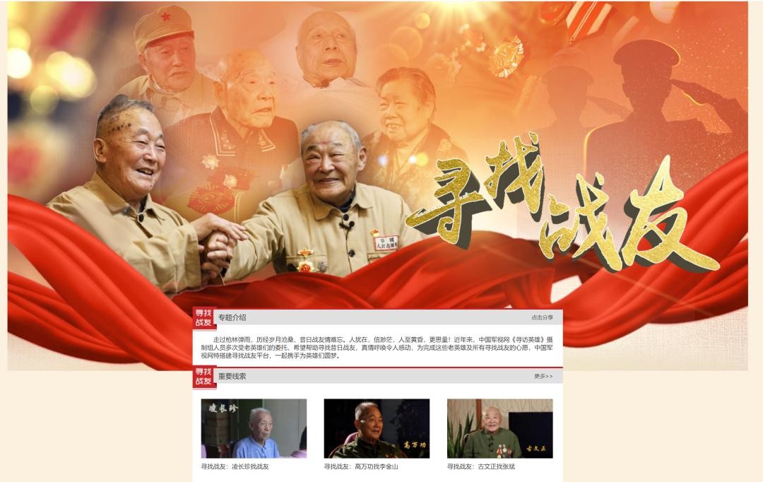 中国军视网特搭建寻找战友平台,