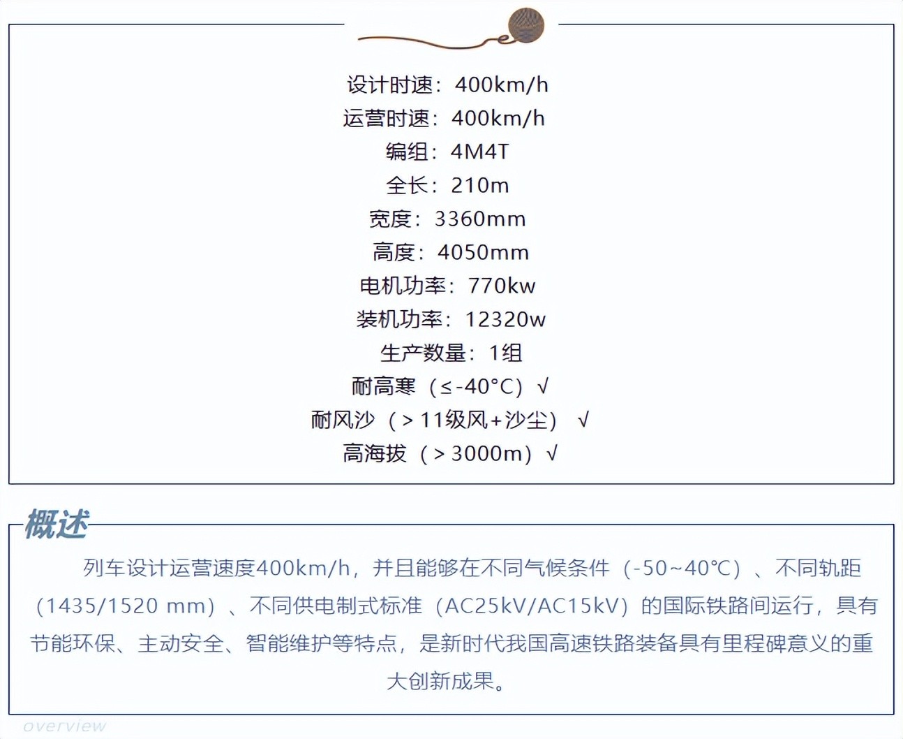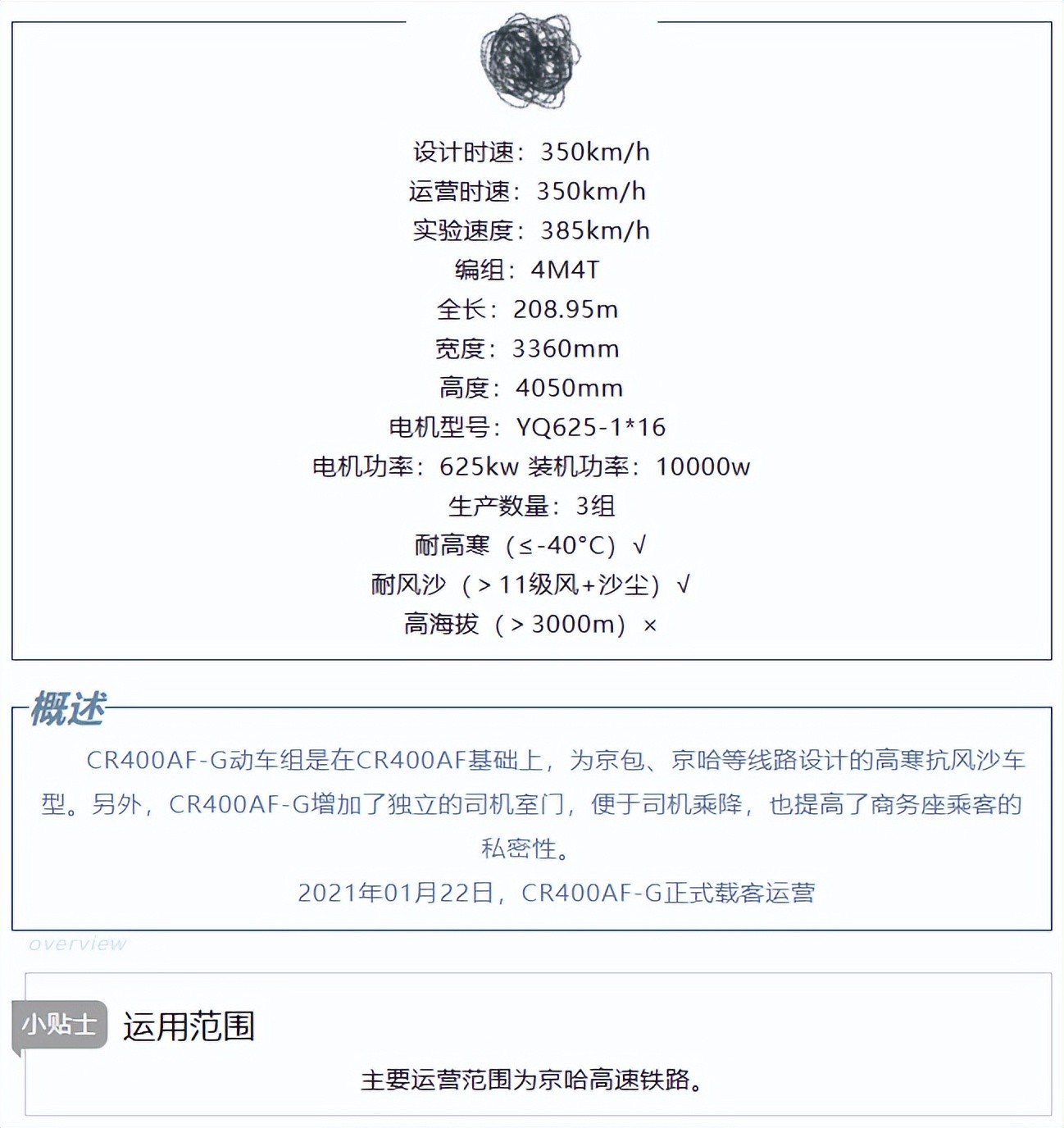 CR400AF(样车)技术参数